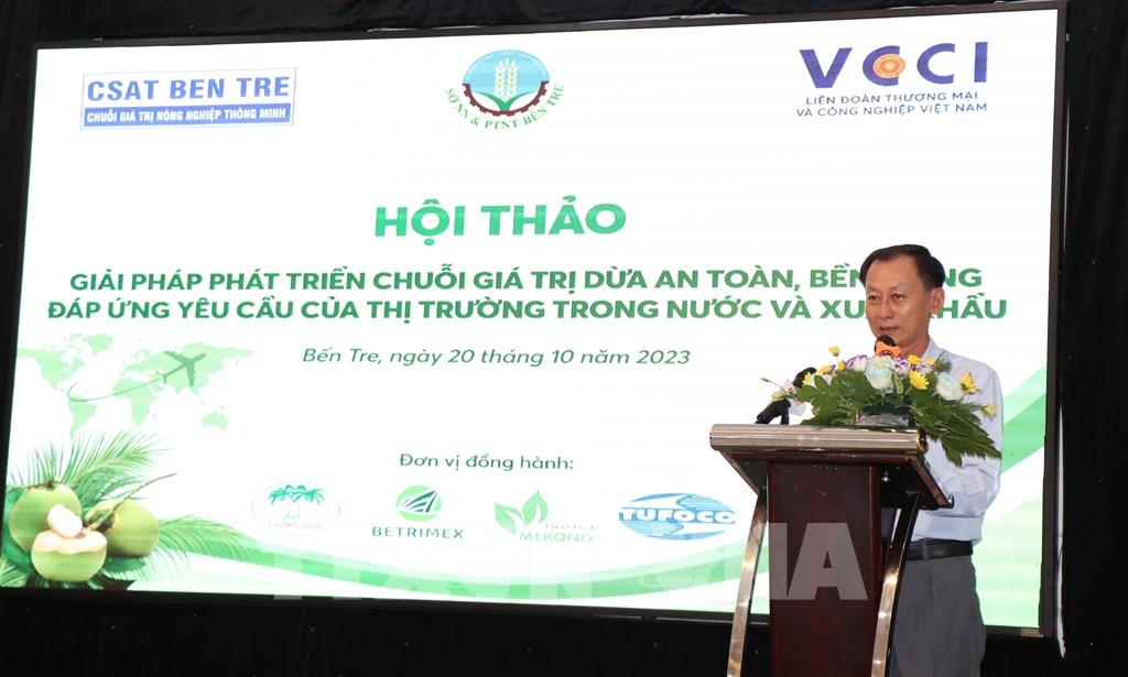 Ngày 20/10, Sở Nông nghiệp và Phát triển nông thôn tỉnh Bến Tre phối hợp với Liên đoàn Thương mại và Công nghiệp Việt Nam và Dự án phát triển chuỗi giá trị nông nghiệp thông minh tỉnh Bến Tre tổ chức Hội thảo: “Giải pháp phát triển chuỗi giá trị dừa an toàn, bền vững đáp ứng yêu cầu của thị trường trong nước và xuất khẩu”